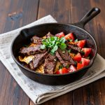 - ‘1 ½ pounds flank steak or skirt steak, thinly sliced’