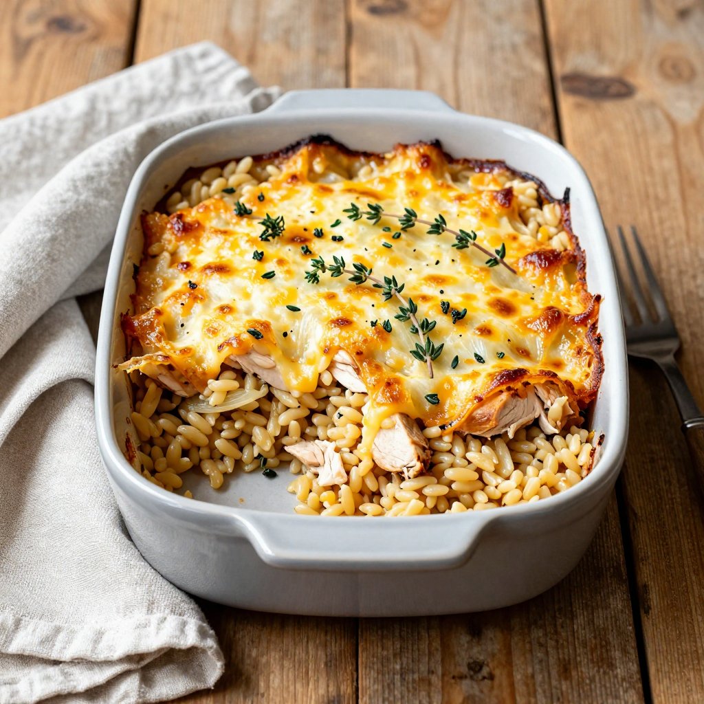 Growing up, my mom’s French onion soup was legendary. The aroma of caramelized onions simmering on the stove always filled our home with warmth and happiness. I wanted to capture that same feeling in a dish that’s a bit more substantial, a complete meal in itself. So, I took those iconic French onion flavors and married them with tender chicken, perfectly cooked orzo, and a generous blanket of melted cheese. The result? A casserole that’s both sophisticated and incredibly comforting. It’s the kind of dish that makes you want to curl up on the couch with a big bowl and a good book.